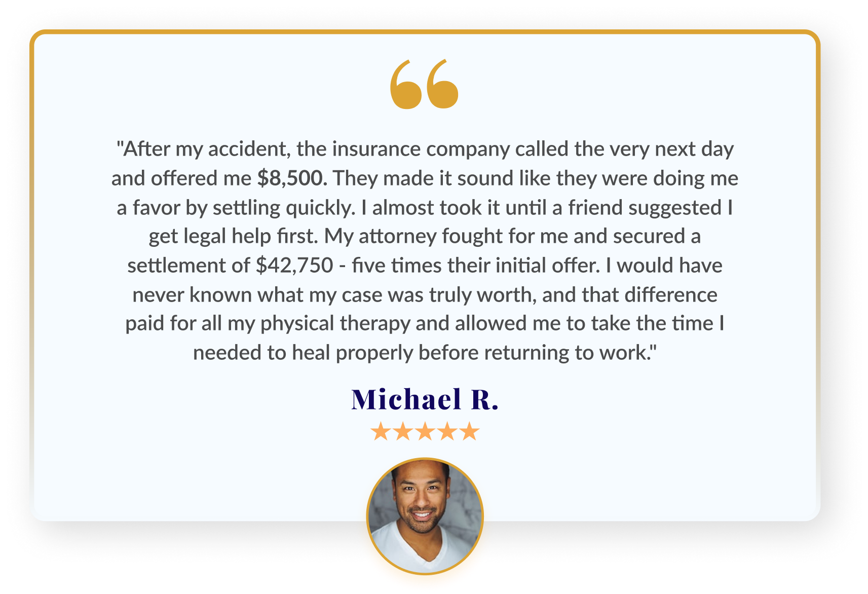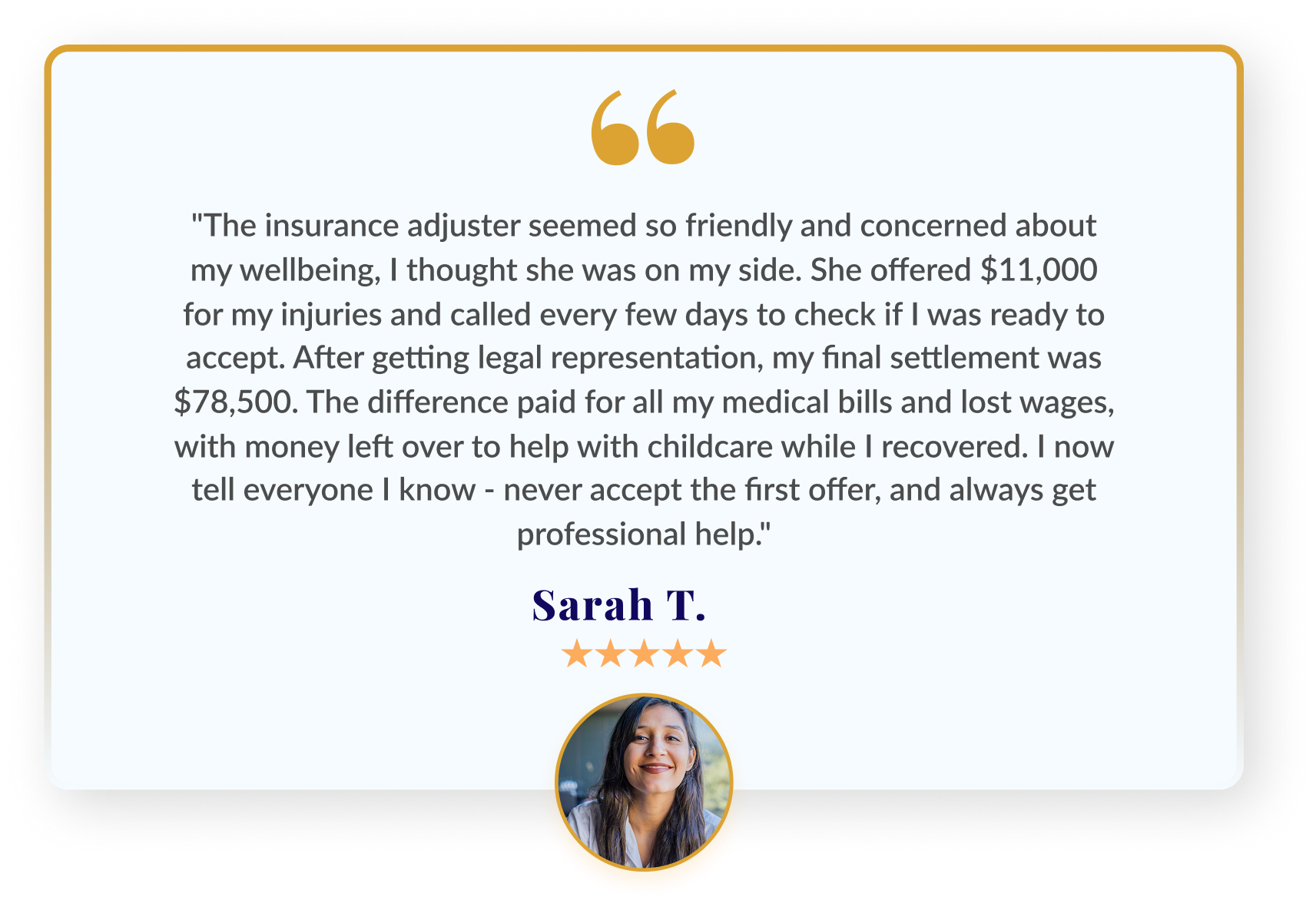 The difference between accepting their initial offer and getting proper representation can mean tens of thousands of dollars – money you need for your recovery and to support yourself and your family during this difficult time.